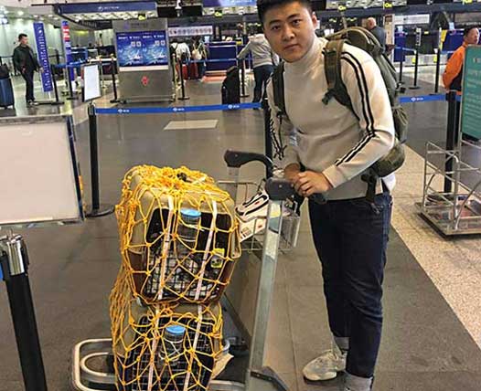 英國(guó)斗牛犬(美國(guó)——中國(guó))因?yàn)槌赡暧⑴O奶?**怕中暑,專業(yè)的寵物保姆給寶寶航空箱放了冷凍礦泉水瓶來(lái)給它降溫。即使長(zhǎng)途運(yùn)輸,寶寶狀態(tài)非常好,在辦公室等待主人接他回家,主人非常滿意,感恩